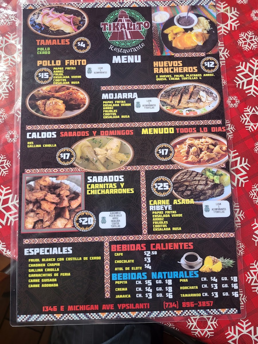Welcome to Tikalito, a charming Central American restaurant nestled in Ypsilanti, Michigan. Known for its vibrant atmosphere and authentic flavors, Tikalito is a hidden gem that showcases the essence of Central American cuisine. The menu features an array of delightful options, including mouth-watering tacos filled with fish, lengua, and juicy chicken. Customers rave about the freshness of the homemade flour tortillas and the robust flavors found in dishes like the carne asada burrito and torta de asada.